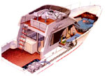 Multiple air handlers available. Condensing unit located in engine room with quiet cooling/heating units in living space.
